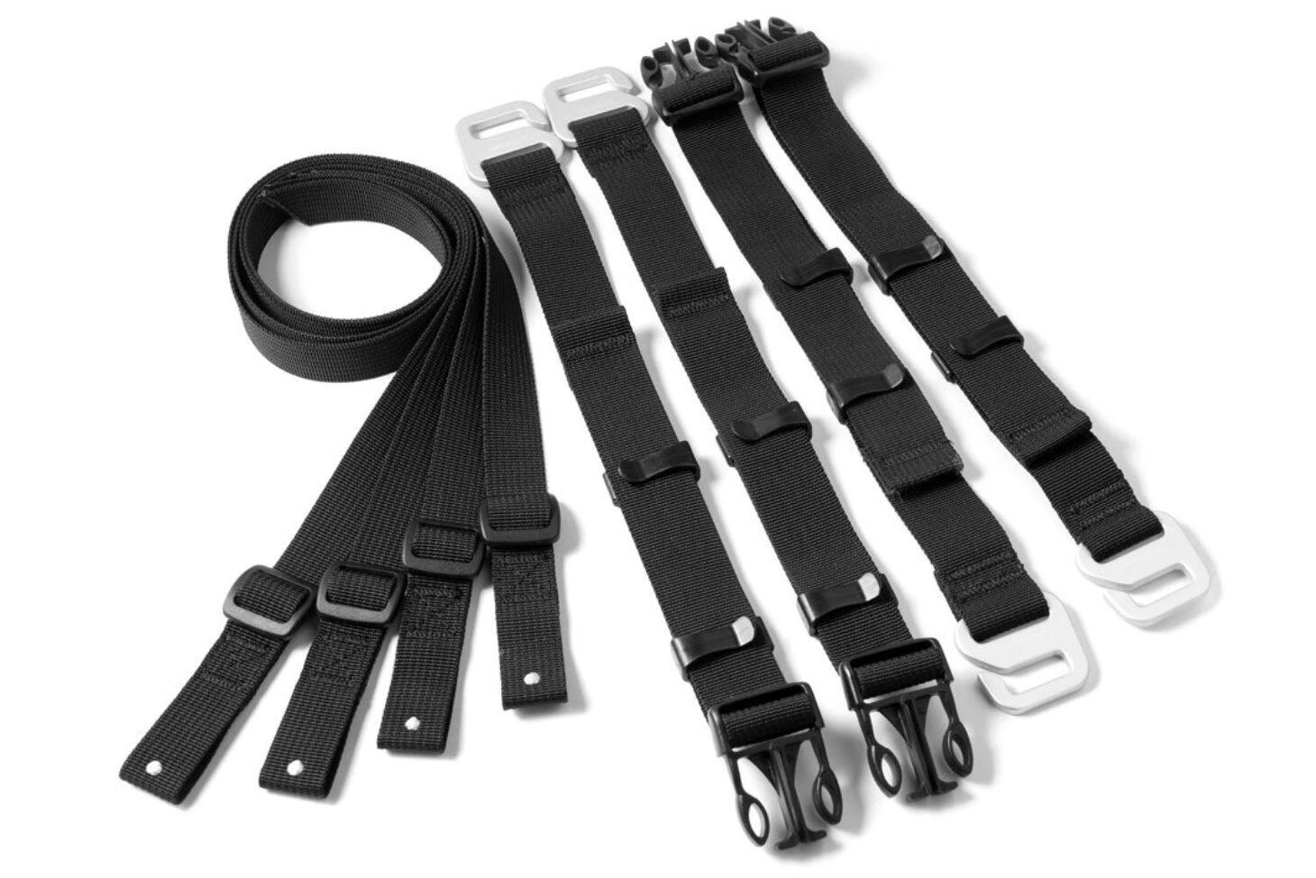 • Fácil de instalar con ganchos de liberación rápida que se fijan a bucles fijados al subchasis de la motocicleta.